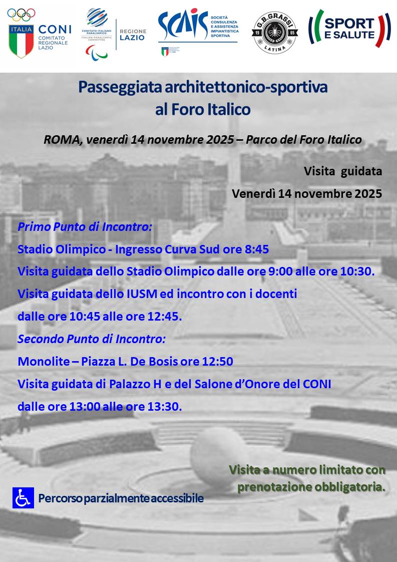 - Roma,14/11/2025 – “PASSEGGIARE NELLO SPORT” AL FORO ITALICO PER LA SCUOLA