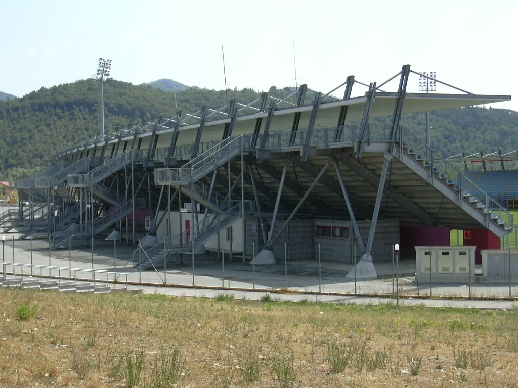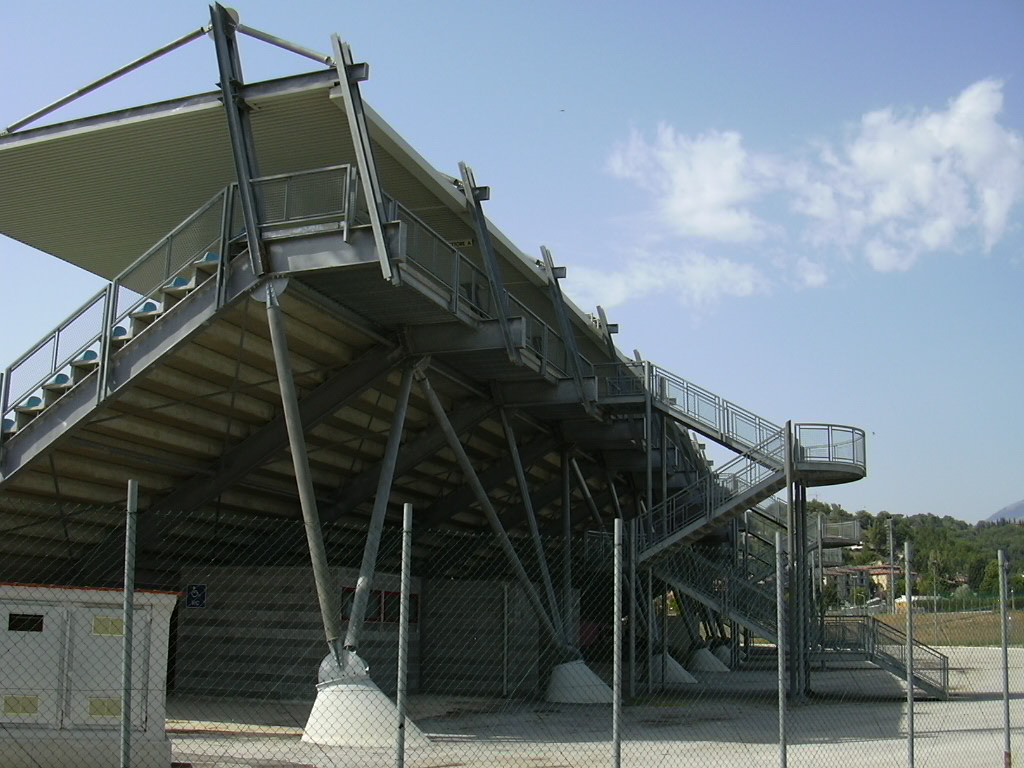 Progettazione dello Stadio Centro d'Italia, impianto di calcio della città di Rieti. Finanziato dall'amministrazione comunale, l'impianto è stato inaugurato l'11 ottobre 1997 in occasione della partita Under-21 tra Italia e Inghilterra.