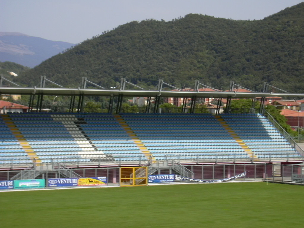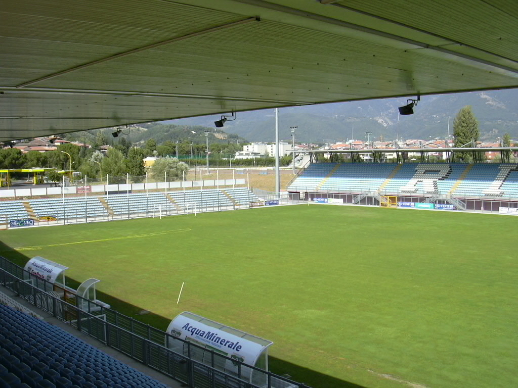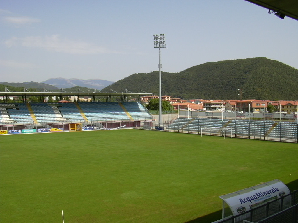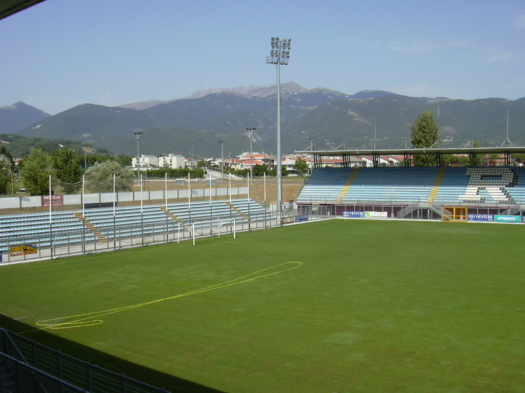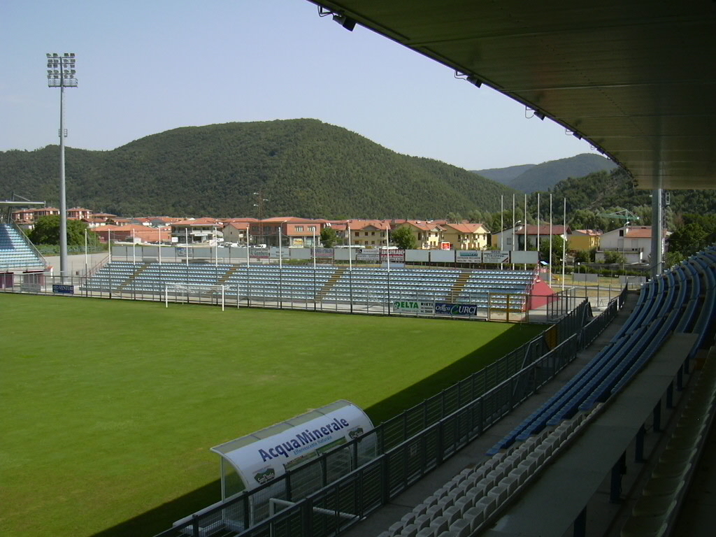 Prima del 1997 l'impianto era costituito unicamente da una tribuna, l'attuale "Valle Santa", e proprio sul finire degli anni novanta il comune di Rieti, proprietario della struttura, decise di procedere ad un ampliamento per dotare la città di un impianto più capiente. Vennero così realizzati gli altri settori e installato l'impianto di illuminazione. Nel 2010 per adeguarlo alle nuove norme di sicurezza in materia di impianti sportivi per il calcio, sono stati installati anche i tornelli.