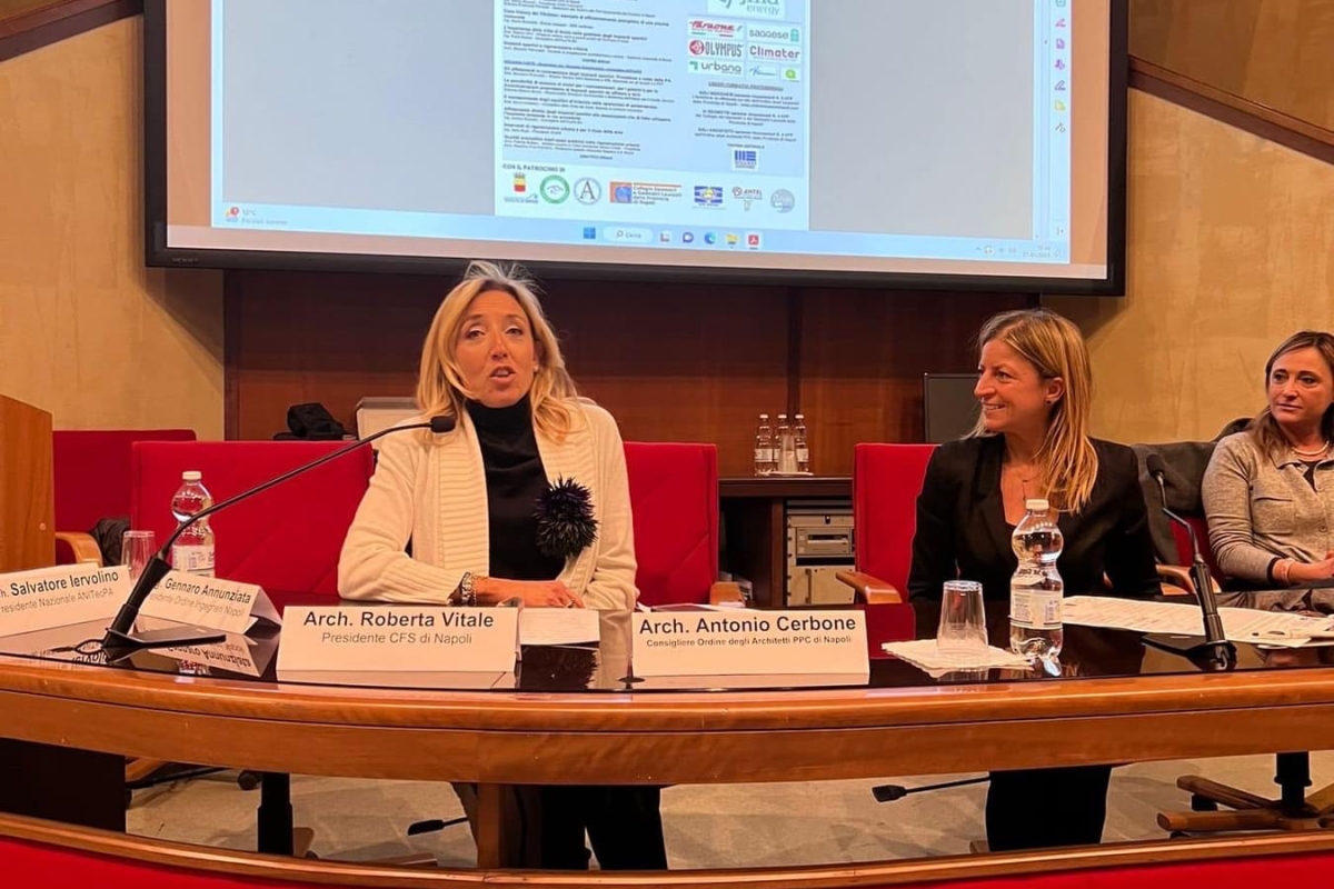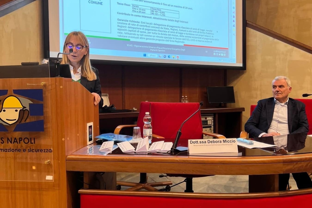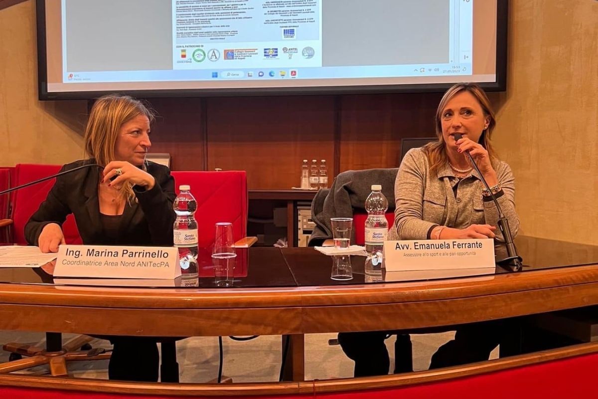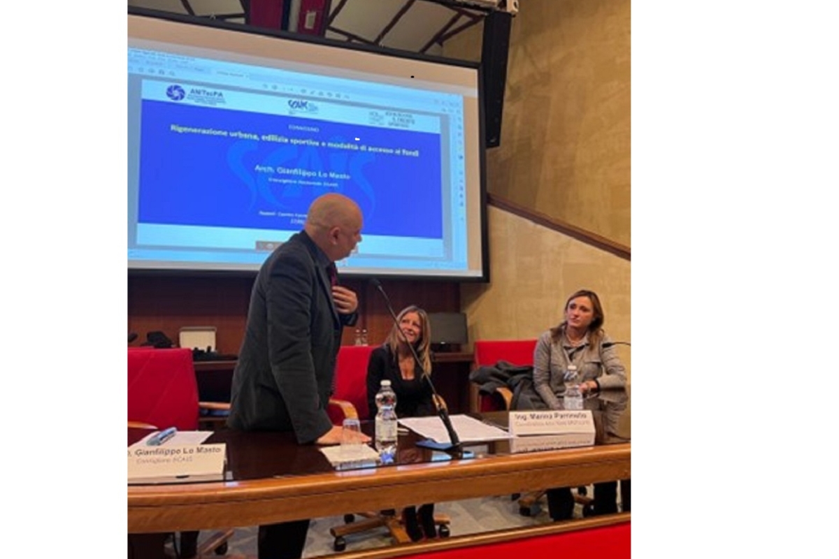 Dopo il saluto del presidente di Anitec, l’arch. Primiani – peraltro anche consigliere di Scais – e della “padrona” di casa, l’arch. Vitale che dirige il C.F.S., vi è stata l’importante prolusione della avv. Ferrante, Assessora allo sport di Napoli, che ha sintetizzato le linee di azione della ancor giovane amministrazione partenopea, così come poi dettagliate dall’arch. Iervolino, dirigente comunale e vice presidente di Anitec.