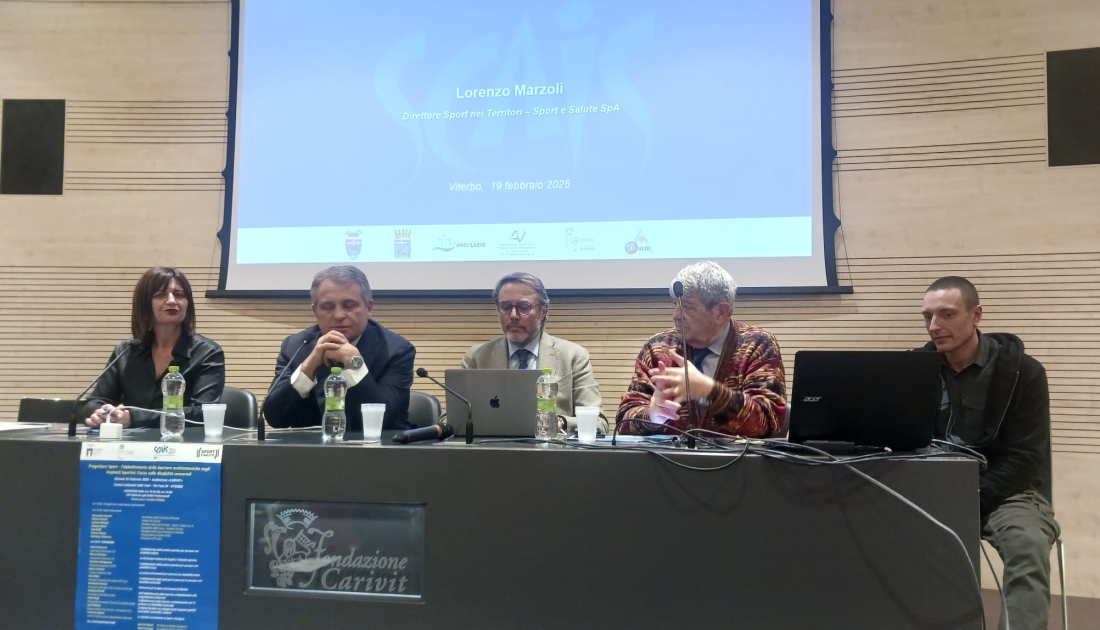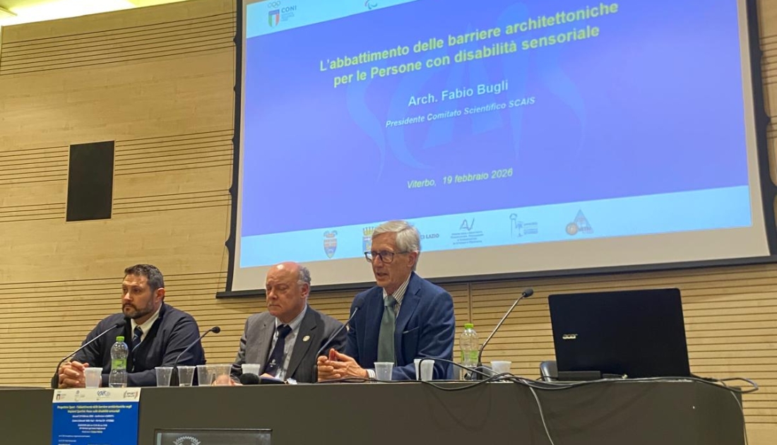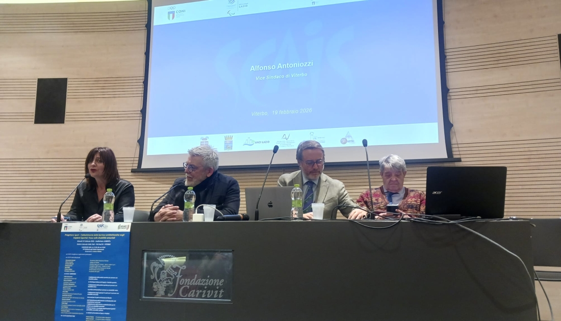 Giovedì 19 febbraio, presso l’auditorium della Fondazione Carivit di Viterbo, si è svolto il Convegno dal titolo “Progettare Sport – l’abbattimento delle barriere architettoniche negli Impianti Sportivi: Focus sulle disabilità sensoriali” organizzato da SCAIS in collaborazione con il CIP Regione Lazio ed il CONI Regione Lazio.