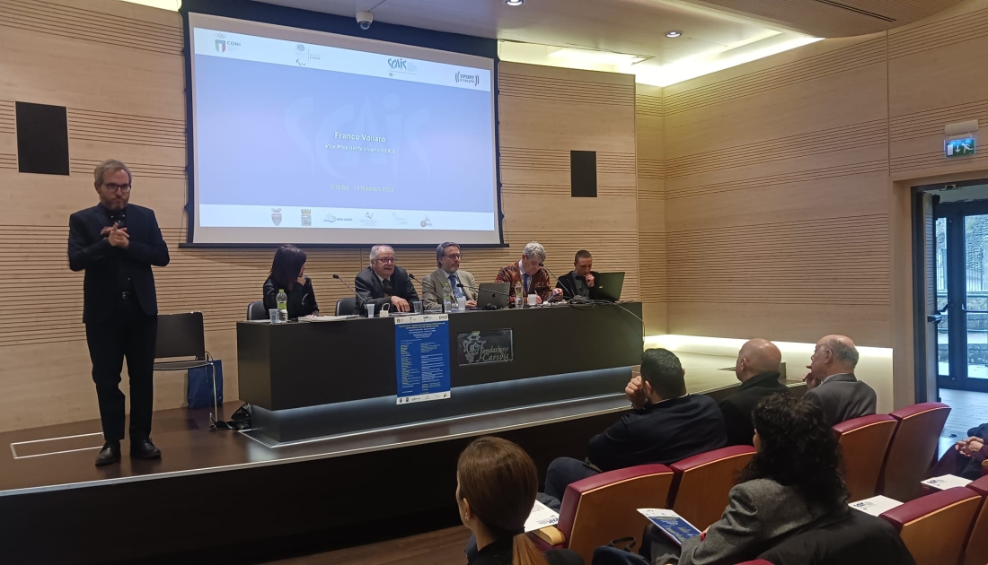 Con la gentile presenza della giornalista e addetta stampa del Comune Cristina Pallotta nel ruolo di moderatrice del Convegno, ha preso per primo la parola il Vice Sindaco di Viterbo, Alfonso Antoniozzi, a cui sono seguiti i saluti da parte del Vice Presidente SCAIS Franco Vollaro, del delegato CONI Lazio Matteo Amori e del Direttore di Sport e Territori Lorenzo Marzoli. Per ultimo ha salutato i presenti il Presidente CIP Lazio Giuseppe Andreana, che ha così dato il via alle relazioni tecniche.