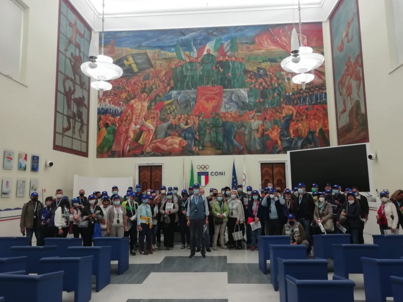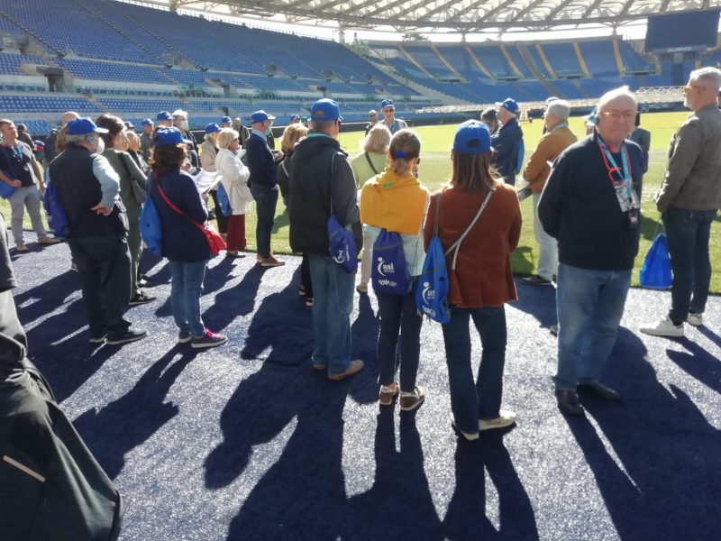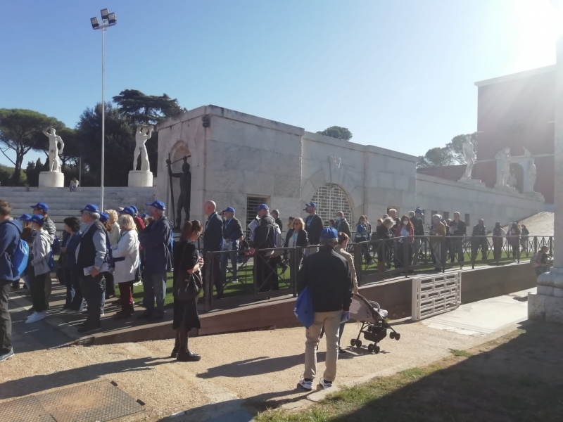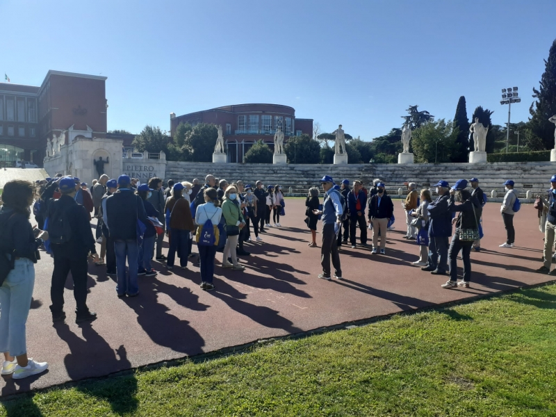 La visita prosegue con lo Stadio Dei Marmi, utilizzato principalmente per l’atletica leggera, caratterizzato da gradinate in marmo di Carrara sormontate in tutto il percorso circolare da 64 statue dono delle Province d’Italia. Grazie alla collaborazione di Sport e Salute SpA è stata data la possibilità al gruppo di accedere allo Stadio Olimpico direttamente dal sottopassaggio di collegamento con lo Stadio dei Marmi, normalmente non accessibile.