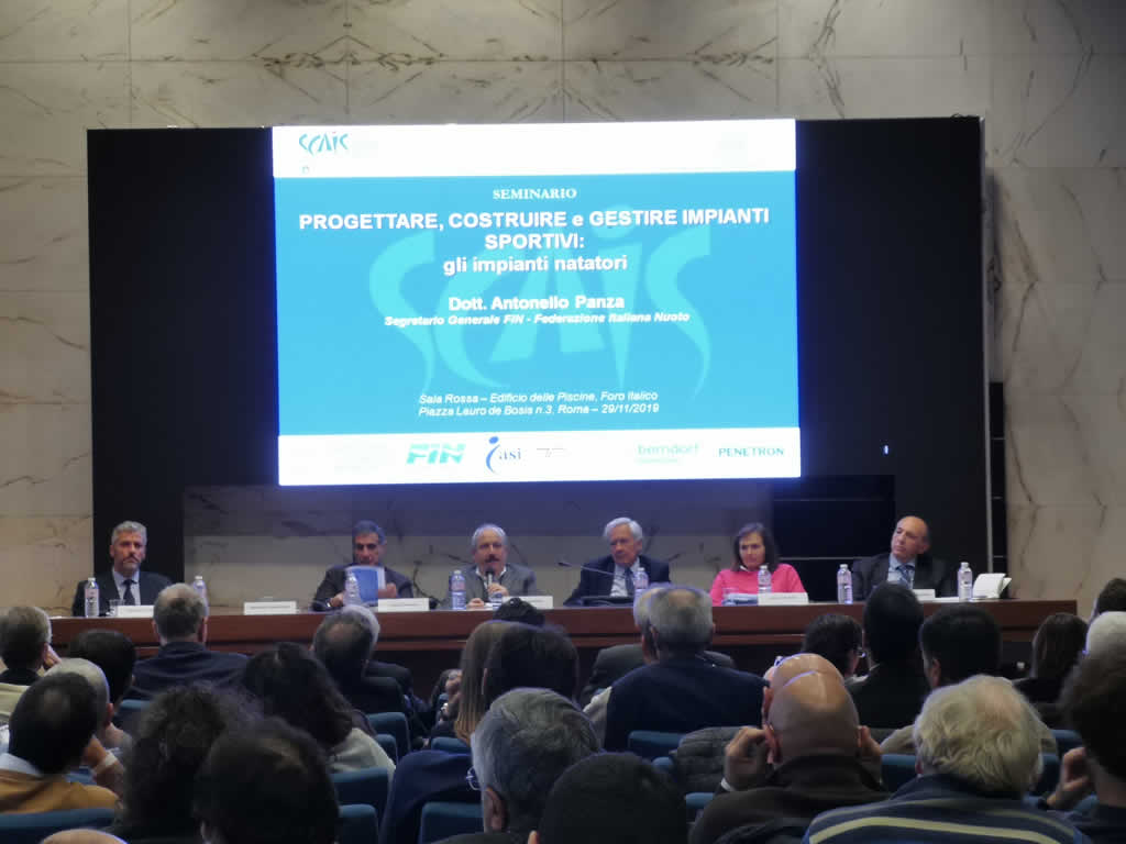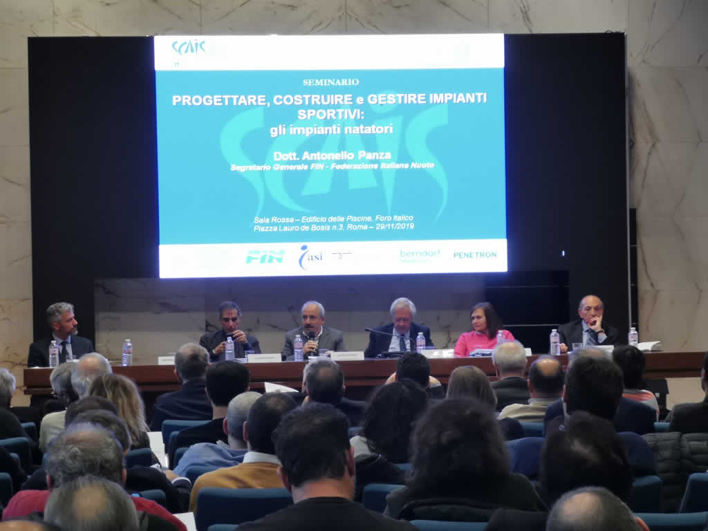 SCAIS ha terminato lo scorso 29 Novembre gli incontri di formazione per l’anno 2019 presso l’Edificio delle Piscine del Foro Italico. Nella Sala Convegni, in collaborazione con l’Ordine degli Ingegneri della Provincia di Roma ha riunito tecnici, esperti, gestori di impianti natatori per seguire le relazioni sul tema “PROGETTARE, COSTRUIRE E GESTIRE IMPIANTI SPORTIVI: GLI IMPIANTI NATATORI”.