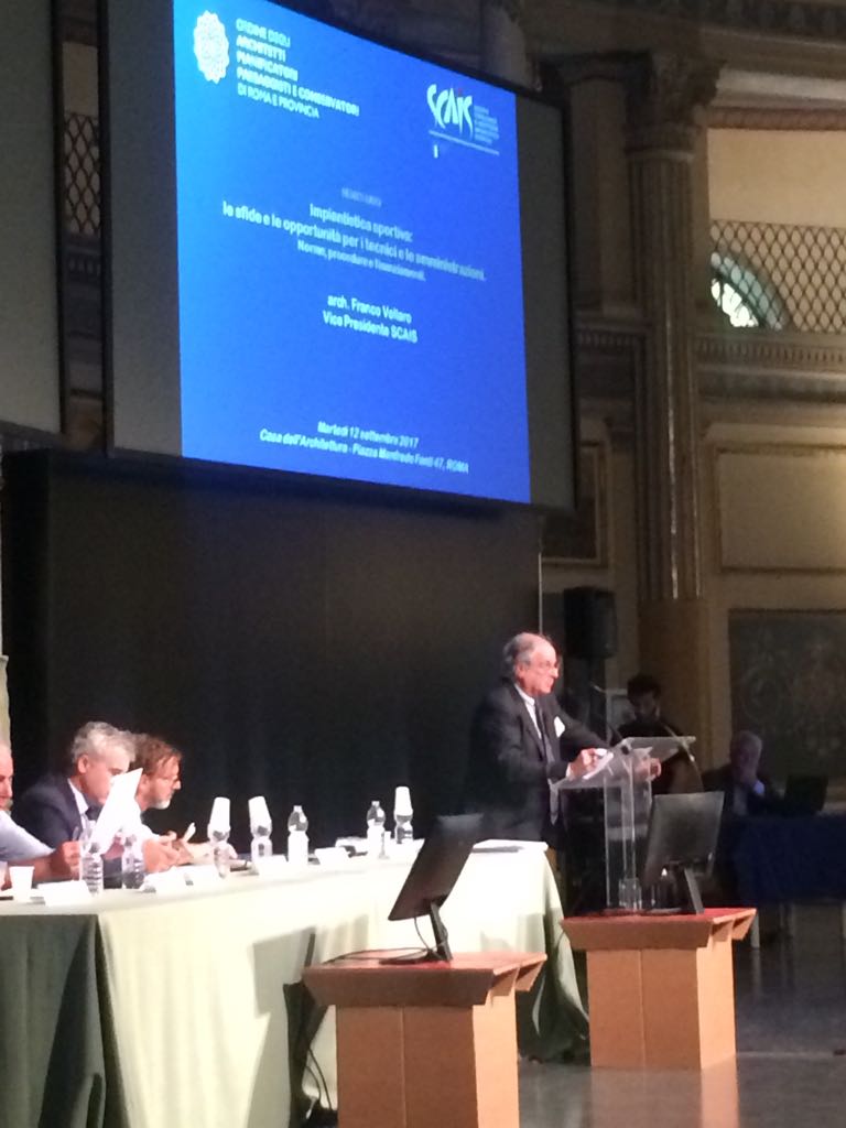 Si è tenuto martedì 12 settembre presso la Casa dell’Architettura (Piazza Manfredo Fanti, 47 Roma) il seminario “Impiantistica sportiva le sfide e le opportunità per i tecnici e le amministrazioni. Norme procedure e finanziamenti”, organizzato dall’Ordine degli Architetti di Roma in collaborazione con la Società Consulenza e Assistenza Impiantistica Sportiva (SCAIS).