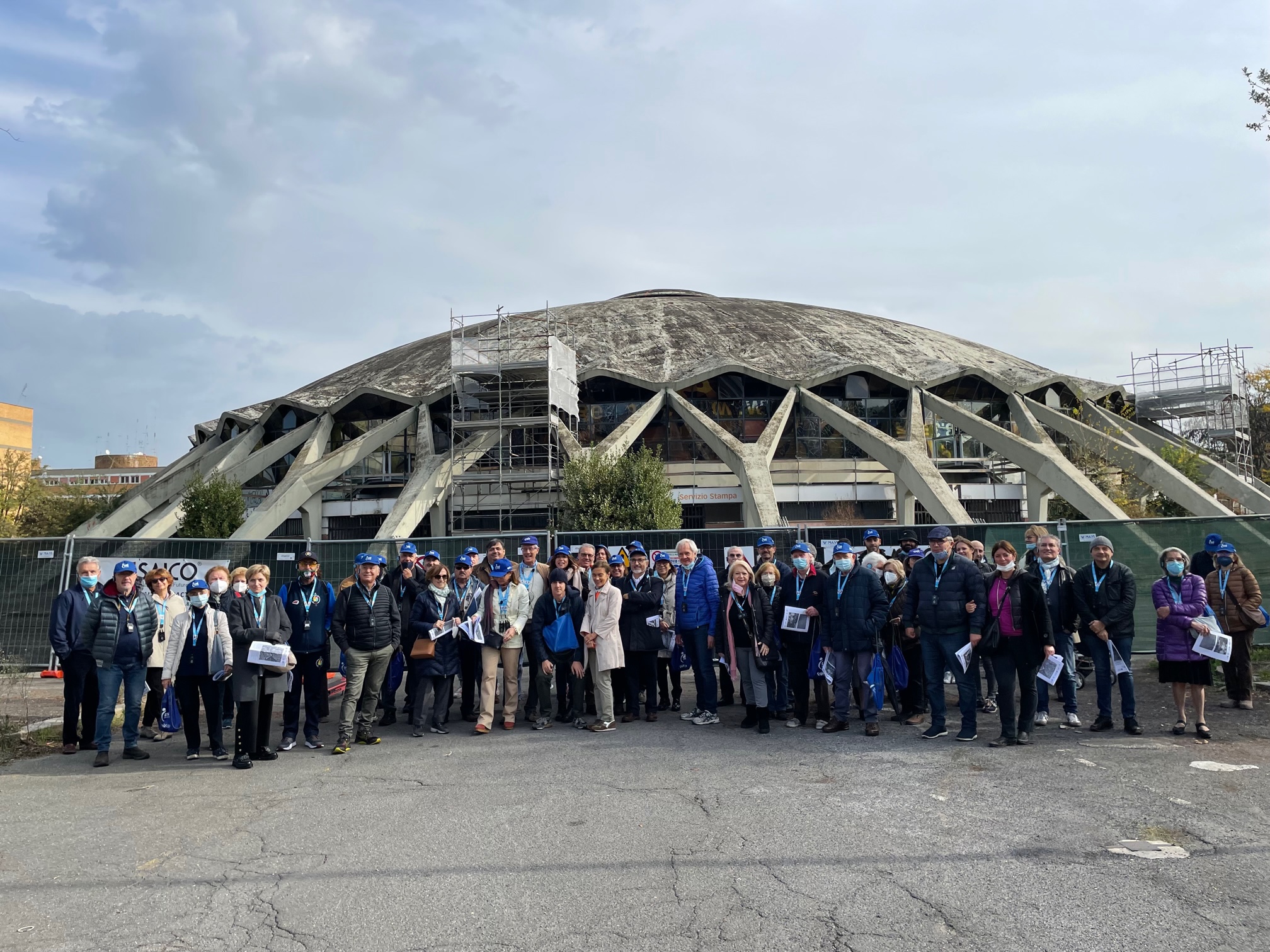 Il gruppo ha proseguito poi in direzione del Palazzetto dello Sport realizzato sempre sotto la direzione dell’ing. Pier Luigi Nervi in collaborazione con l’arch. Annibale Vitellozzi, tra il 1956 e il 1957, con un ingegnoso sistema di prefabbricazione a terra: anche questo impianto attualmente versa in condizioni di estremo abbandono, ma finalmente sono da poco iniziati i lavori di risanamento conservativo e di adeguamento a norma dell’impianto.